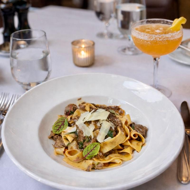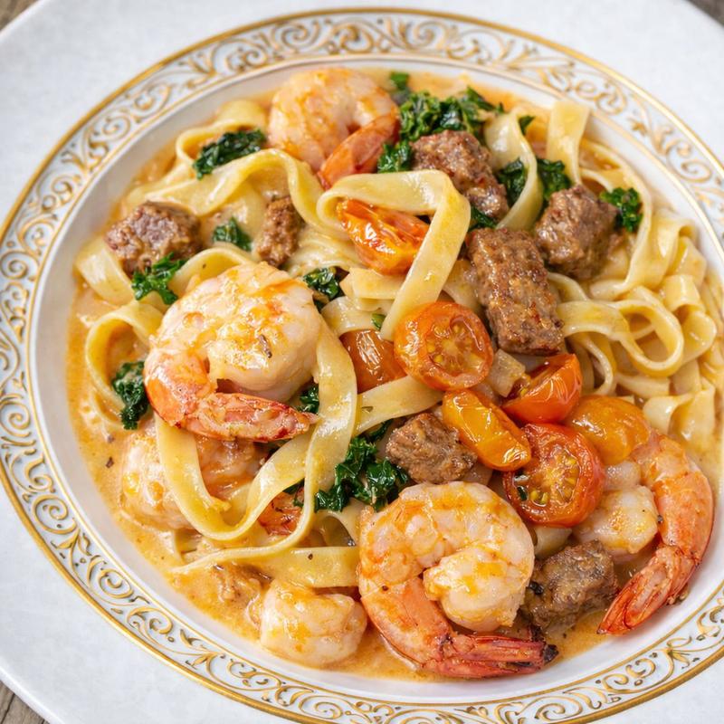 Sautéed Shrimp, Heirloom Cherry Tomatoes, Italian Kale, Lemon, Saffron Lobster Cream Sauce, Calabrian Chili, Tagliatelle