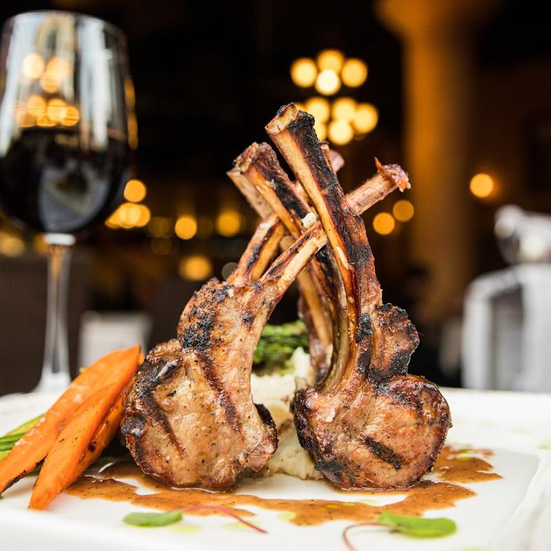 Grilled Marinated Australian Lamb Chops, Brown Rice Pilaf, Green Peas, Demi-Glace