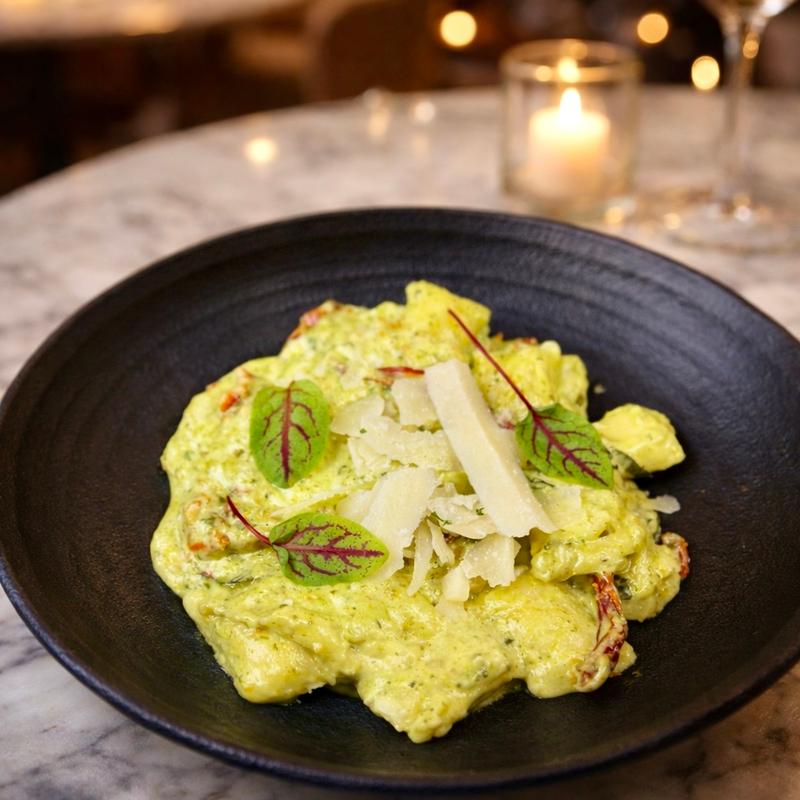 Potato Dumpling, Pistachio Pesto, Ricotta, Sundried Tomato