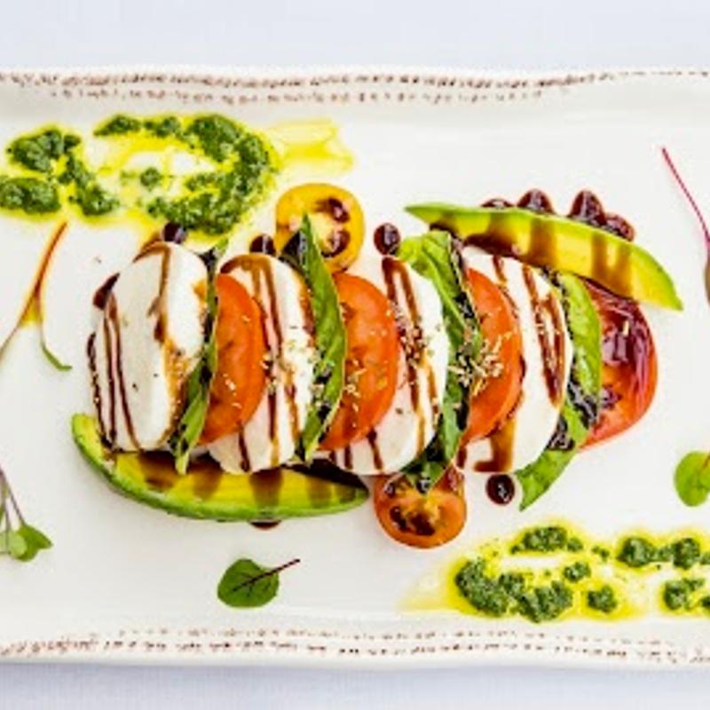 Fior di Latte Mozzarella, Heirloom Tomatoes, Pesto, Balsamic Reduction